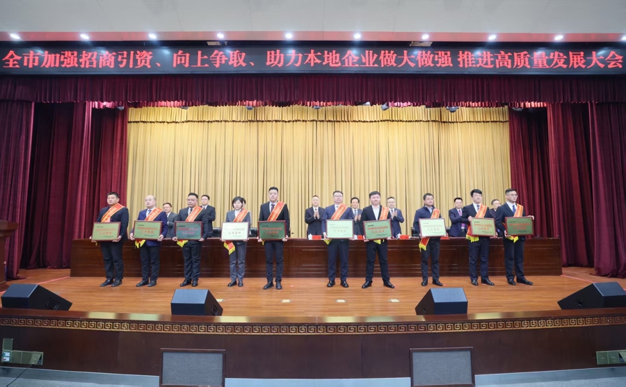 大会宣读了《关于表彰2025年度蚌埠市经济社会高质量发展贡献奖先进集体和先进个人的决定》《关于对2025年度招商引资工作作出突出贡献人员记功嘉奖的通报》,并为有关单位和个人颁奖,为14个招商分局授旗。