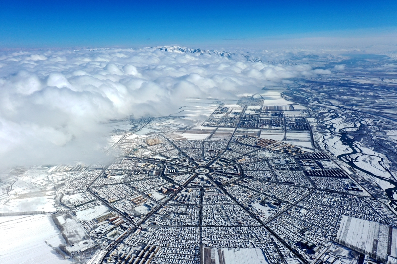 这是11月6日拍摄的新疆特克斯县城雪后景观(无人机照片)。