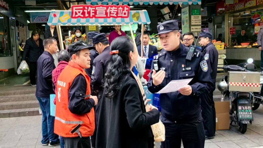 除了“静态”融入,这里还有民警与平安办工作人员的“动态”守护。他们利用早市人流高峰,在门口设点宣讲,尤其关注老年群体,面对面拆解骗术,引导市民扫码关注反诈公众号。“来了几次,顺口溜都记住了,现在接到陌生电话,脑子里自动报警!”居民张阿姨边说边笑,“看到警察和街道这么用心,住在这儿特别踏实。”