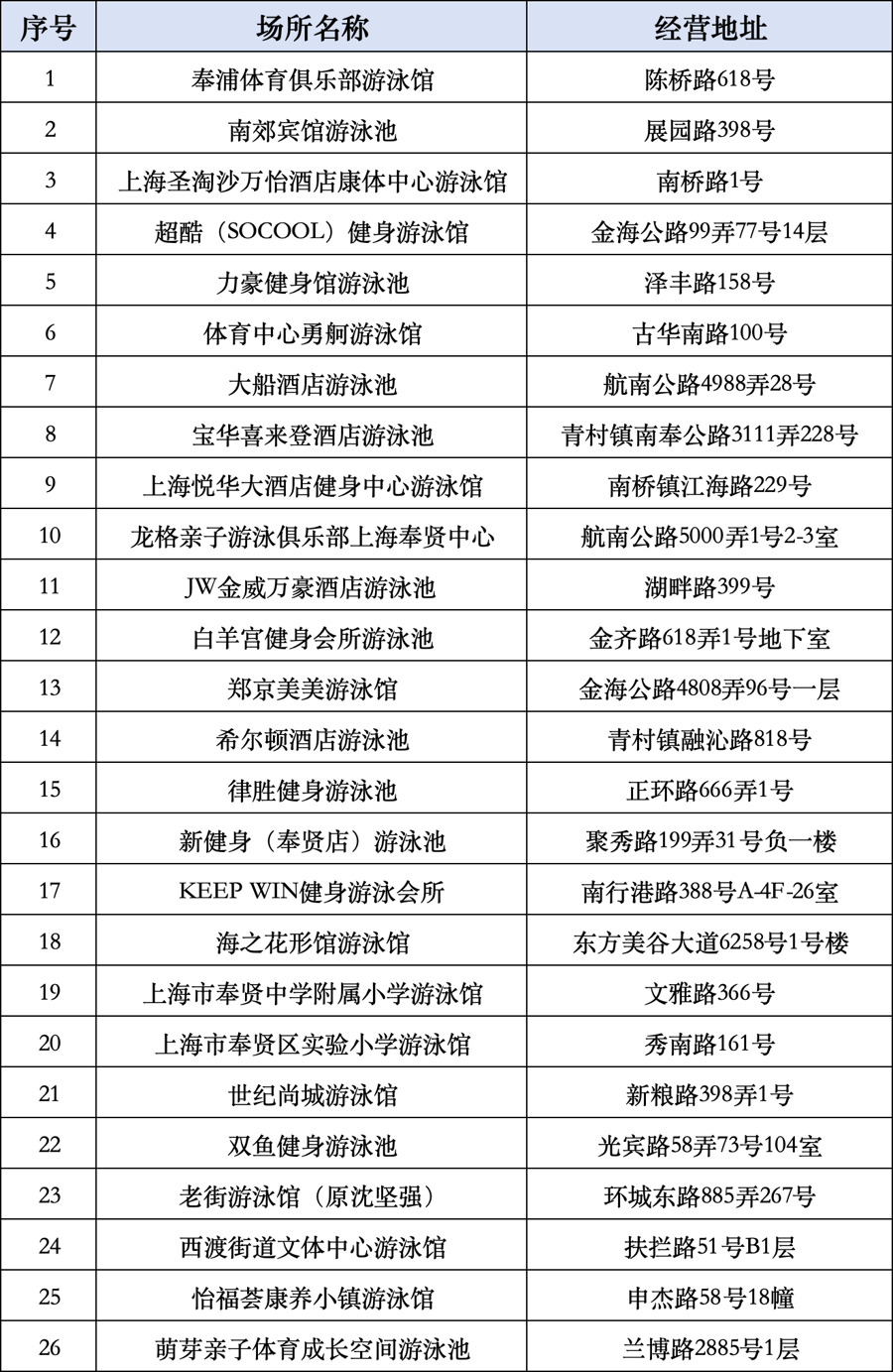 奉贤区温水游泳池开放信息