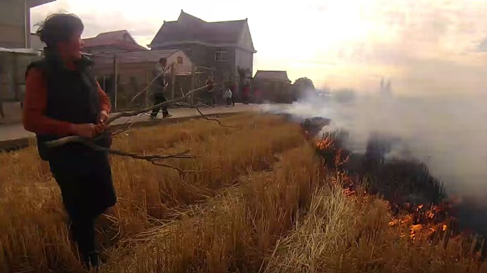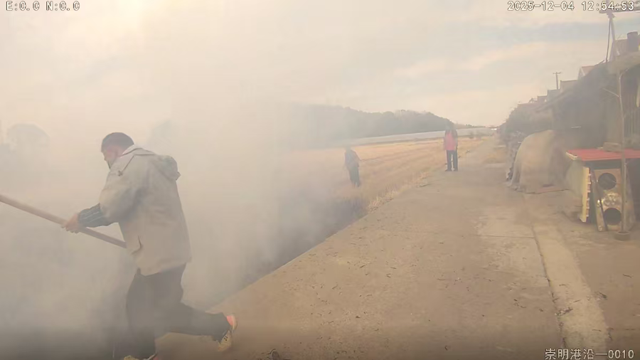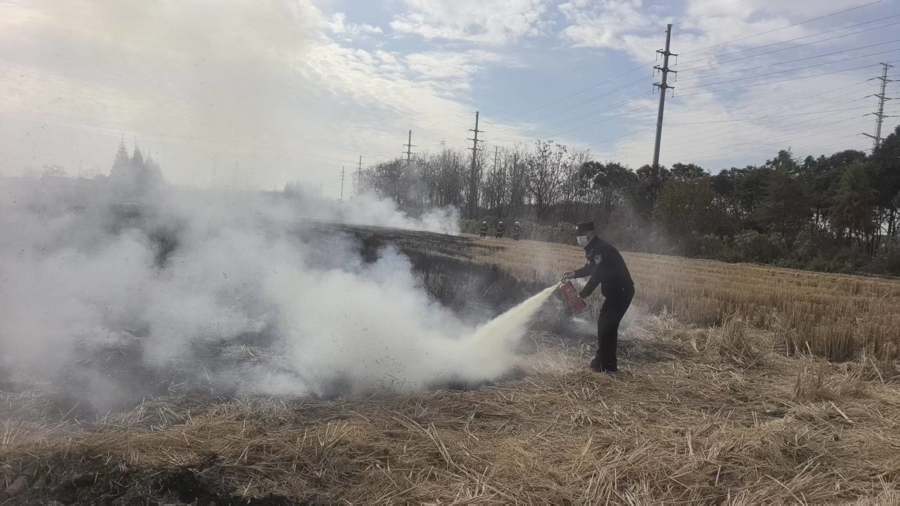 “那边地里怎么冒这么大的烟?”12月4日13时许,崇明公安分局港沿派出所民警沈嘉和黄星宇驾车巡逻至辖区建中村范围时,望见不远处的田间浓烟滚滚。两人立即驱车赶赴现场,发现收割完的稻田里,一大片立着的稻草秸秆燃起了火,火势借助风势迅速蔓延,近半亩的秸干被火焰吞噬。